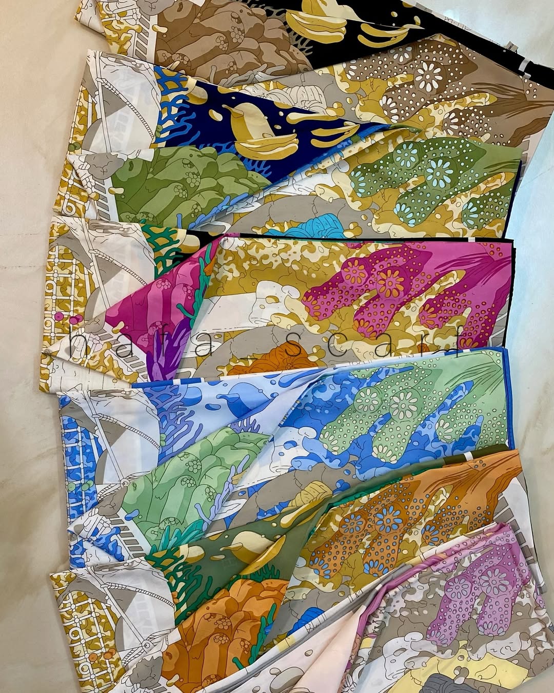 روسری ابریشم ژاکارد طرح اقیانوس قواره۱۴۰